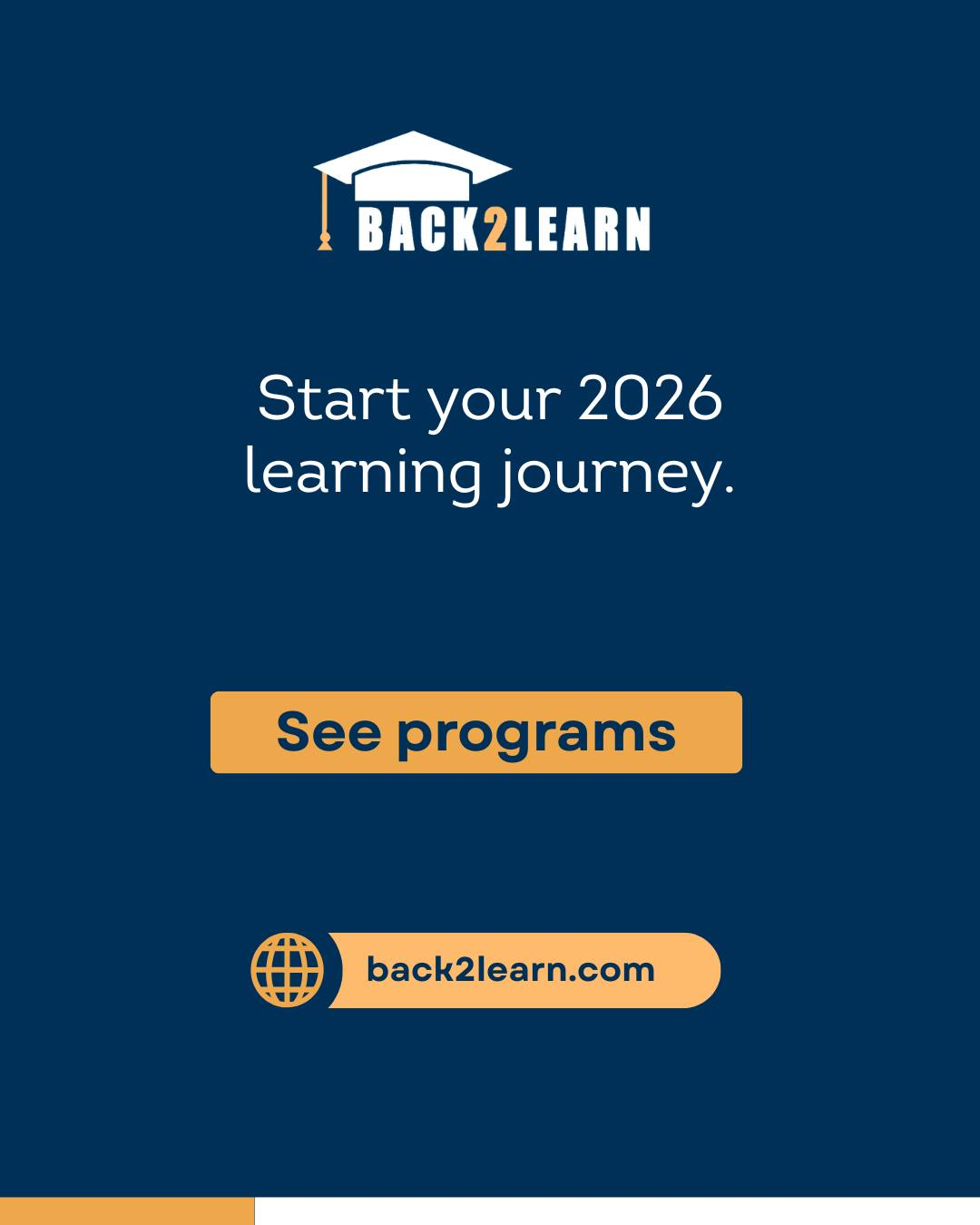 Happy New Year from Back2Learn! Here’s to a fresh start, new possibilities, and the motivation to keep learning and moving forward at your own pace. Whether you’re returning to school or exploring a brand-new program, 2026 is your year to grow, focus, and begin again. One chapter closes — another begins.